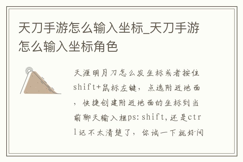 天刀手游怎么輸入坐標_天刀手游怎么輸入坐標角色