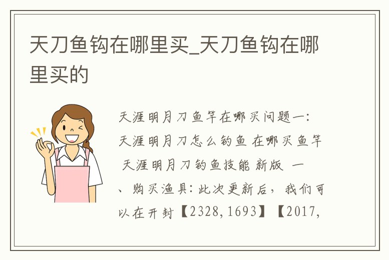 天刀魚鉤在哪里買_天刀魚鉤在哪里買的