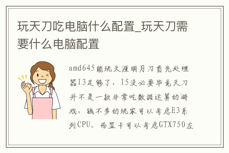 玩天刀吃電腦什么配置_玩天刀需要什么電腦配置