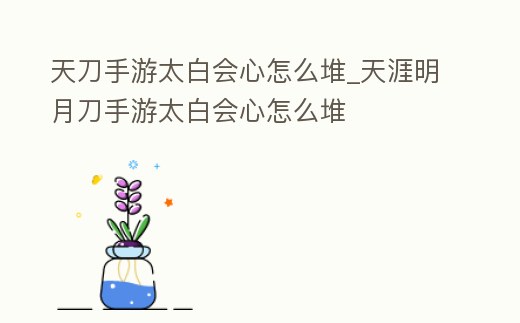 天刀手游太白會心怎么堆_天涯明月刀手游太白會心怎么堆
