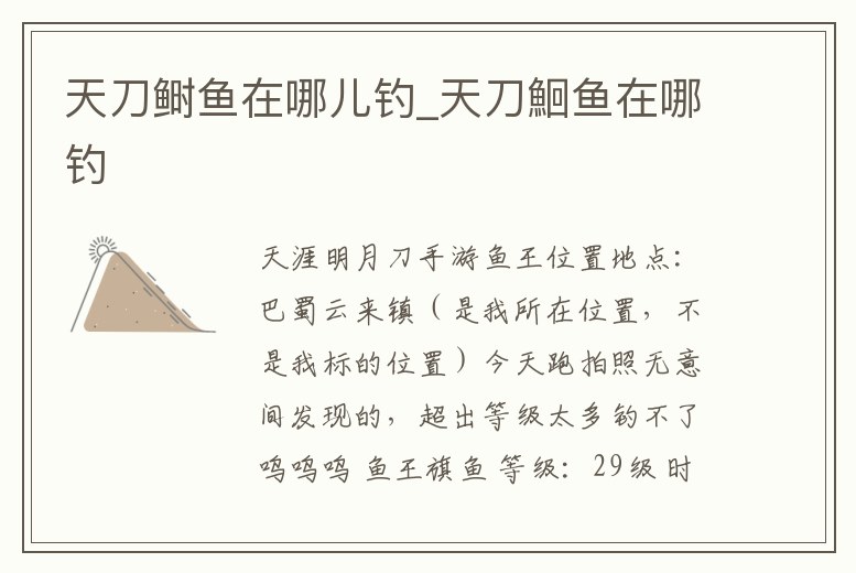 天刀鰣魚在哪兒釣_天刀鮰魚在哪釣