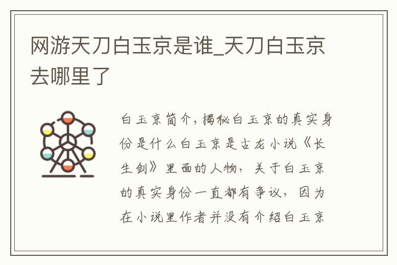 網游天刀白玉京是誰_天刀白玉京去哪里了
