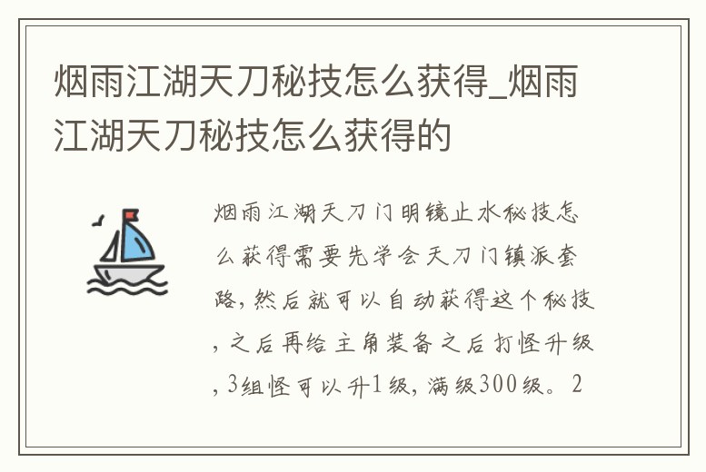 煙雨江湖天刀秘技怎么獲得_煙雨江湖天刀秘技怎么獲得的