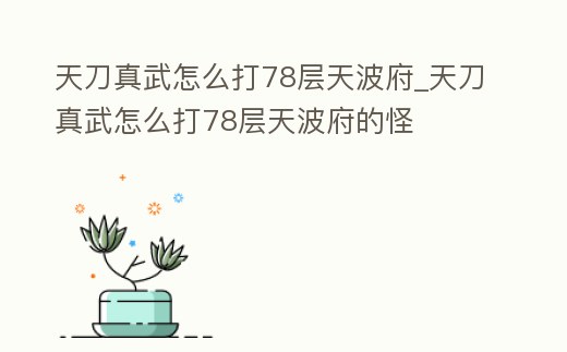 天刀真武怎么打78層天波府_天刀真武怎么打78層天波府的怪