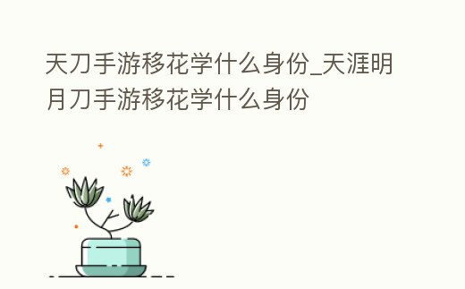 天刀手游移花學什么身份_天涯明月刀手游移花學什么身份