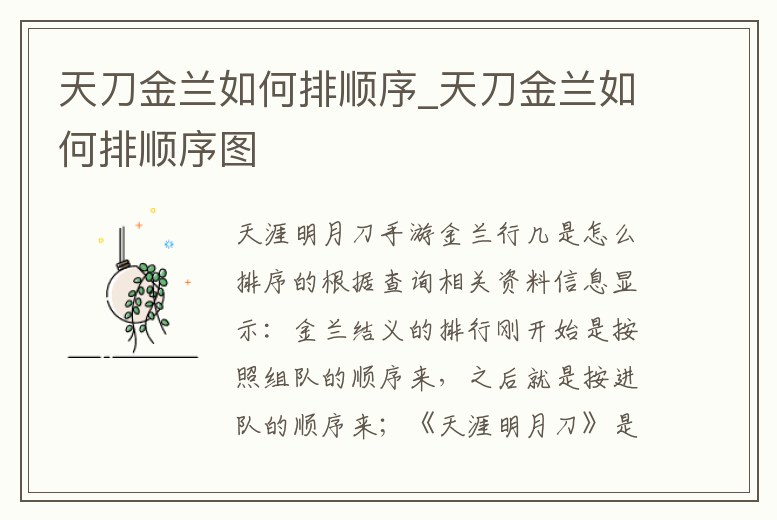天刀金蘭如何排順序_天刀金蘭如何排順序圖