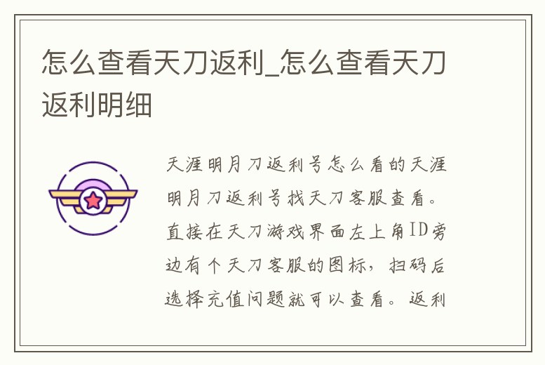 - 怎么查看天刀返利_怎么查看天刀返利明細(xì)