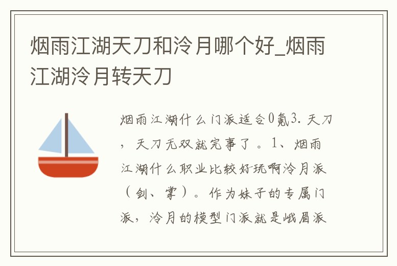 煙雨江湖天刀和泠月哪個好_煙雨江湖泠月轉(zhuǎn)天刀