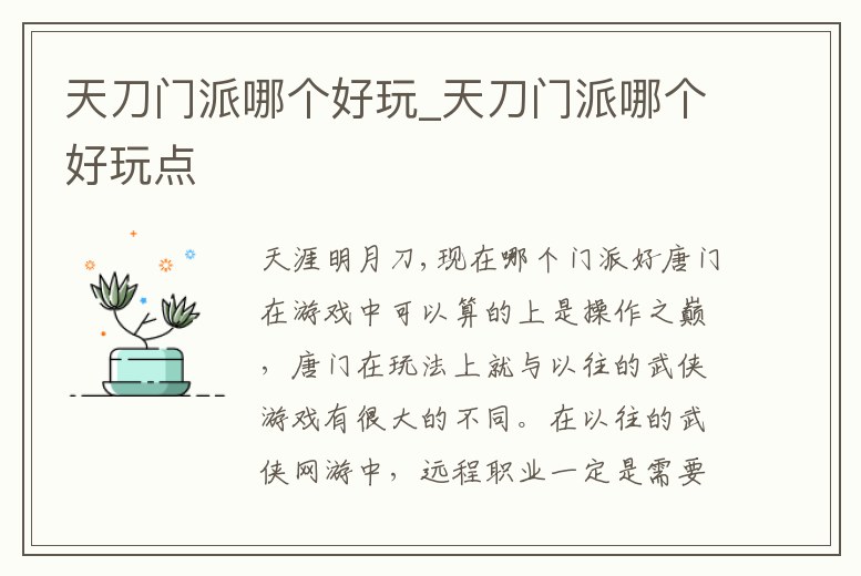 天刀門派哪個好玩_天刀門派哪個好玩點