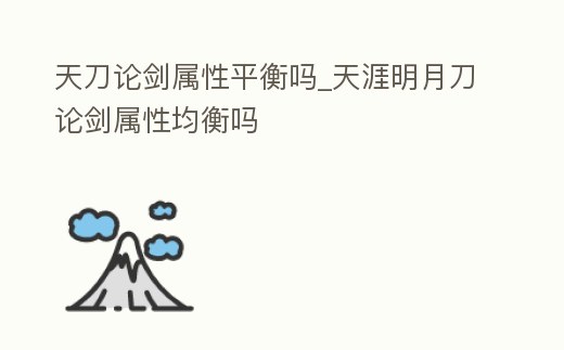 天刀論劍屬性平衡嗎_天涯明月刀論劍屬性均衡嗎