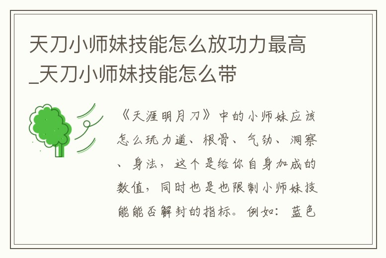 天刀小師妹技能怎么放功力最高_天刀小師妹技能怎么帶