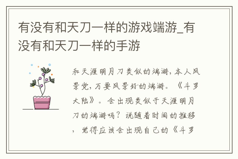 有沒有和天刀一樣的游戲端游_有沒有和天刀一樣的手游