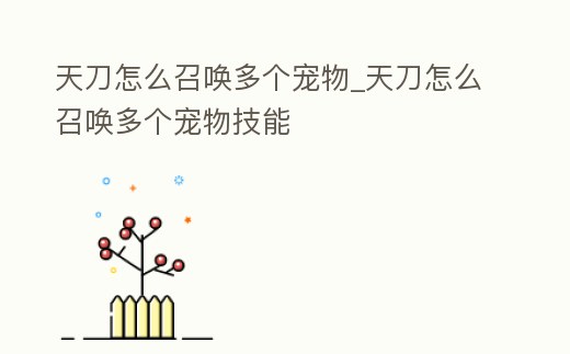 天刀怎么召喚多個寵物_天刀怎么召喚多個寵物技能