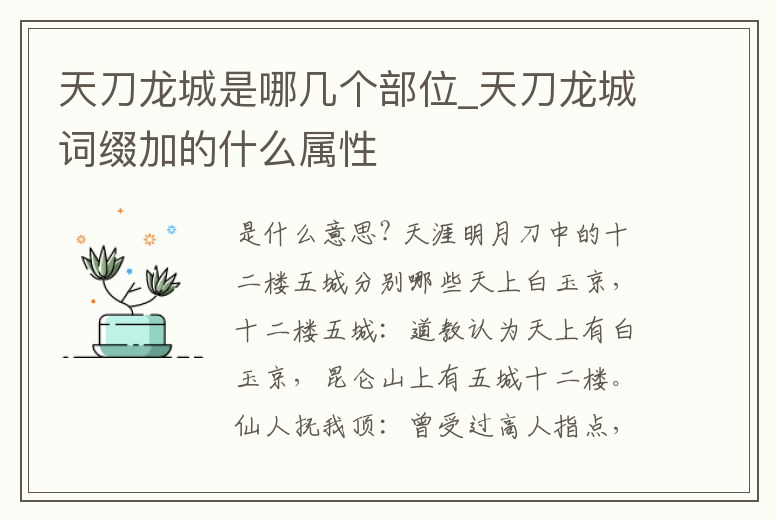天刀龍城是哪幾個部位_天刀龍城詞綴加的什么屬性