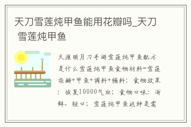 天刀雪蓮燉甲魚能用花瓣嗎_天刀 雪蓮燉甲魚