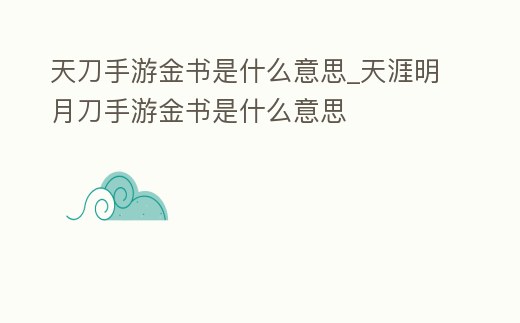 - 天刀手游金書是什么意思_天涯明月刀手游金書是什么意思