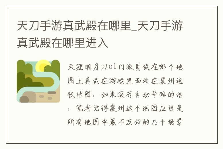 天刀手游真武殿在哪里_天刀手游真武殿在哪里進入