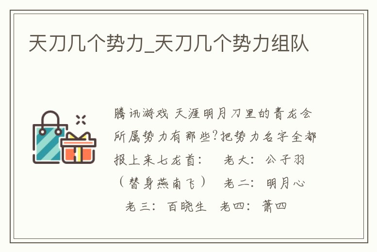 騰訊游戲 天涯明月刀里的青龍會所屬勢力有那些?把勢力名字全都報上來