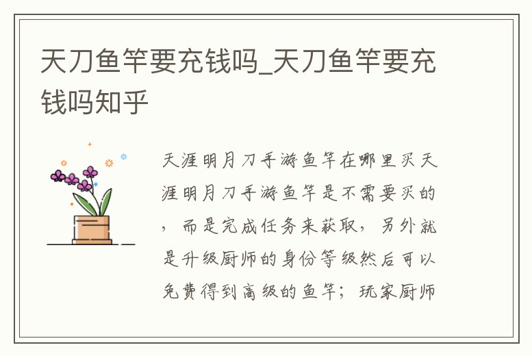 天刀魚竿要充錢嗎_天刀魚竿要充錢嗎知乎