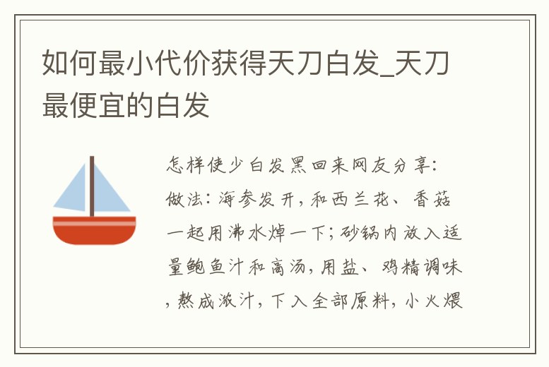 如何最小代價獲得天刀白發_天刀最便宜的白發