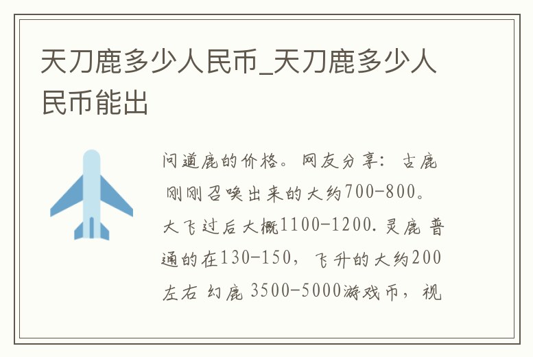 天刀鹿多少人民幣_天刀鹿多少人民幣能出