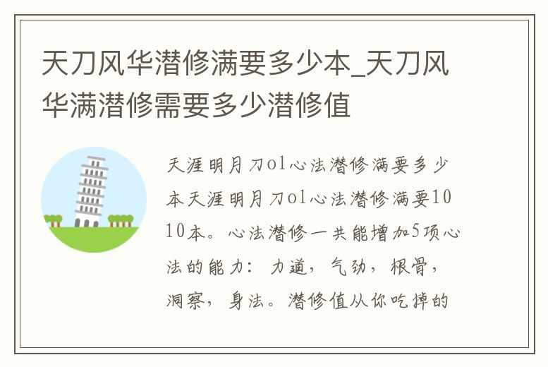 天刀風(fēng)華潛修滿要多少本_天刀風(fēng)華滿潛修需要多少潛修值