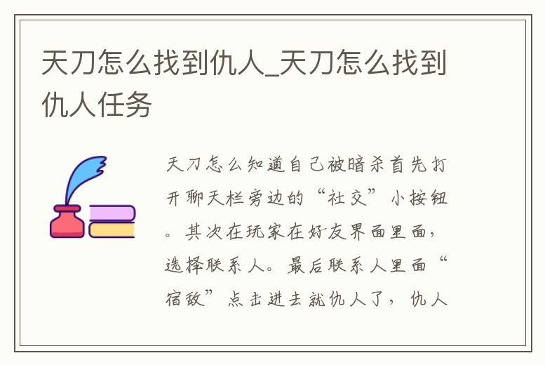 天刀怎么找到仇人_天刀怎么找到仇人任務