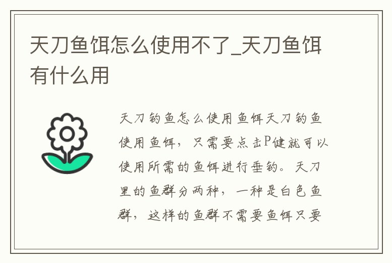 天刀魚餌怎么使用不了_天刀魚餌有什么用