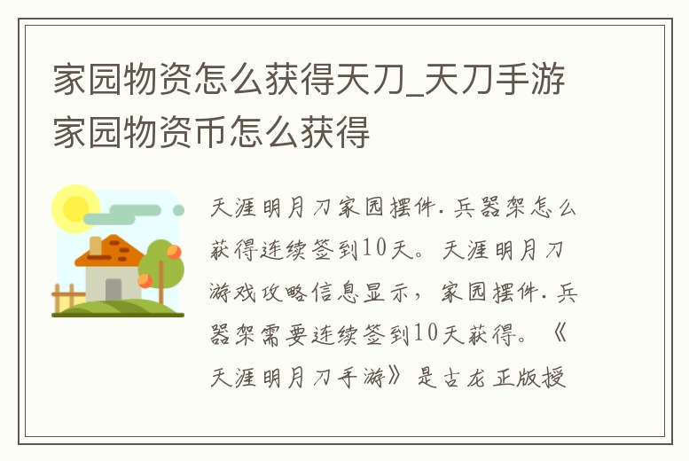 家園物資怎么獲得天刀_天刀手游家園物資幣怎么獲得
