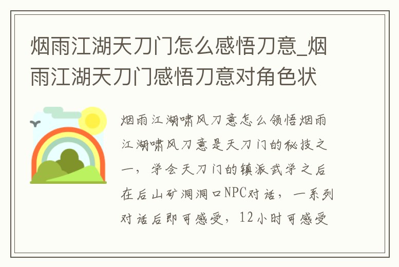 煙雨江湖天刀門怎么感悟刀意_煙雨江湖天刀門感悟刀意對角色狀態