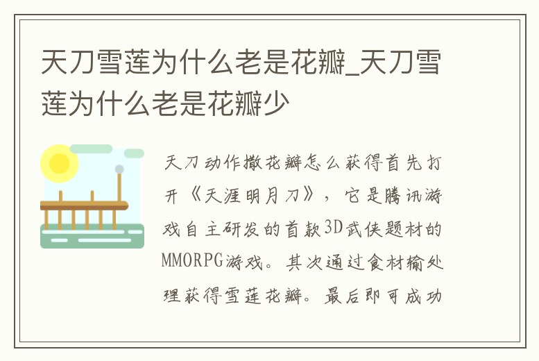 天刀雪蓮為什么老是花瓣_天刀雪蓮為什么老是花瓣少
