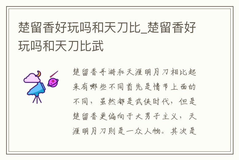 楚留香好玩嗎和天刀比_楚留香好玩嗎和天刀比武