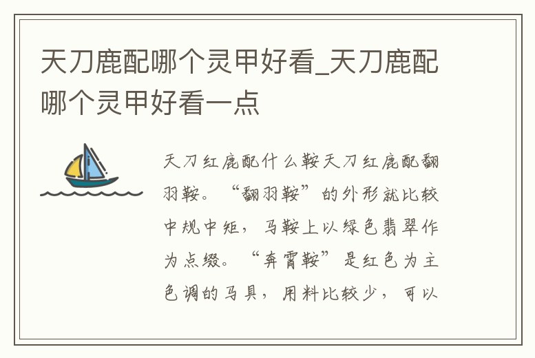 天刀鹿配哪個靈甲好看_天刀鹿配哪個靈甲好看一點
