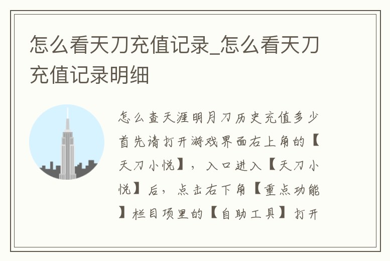 怎么看天刀充值記錄_怎么看天刀充值記錄明細(xì)