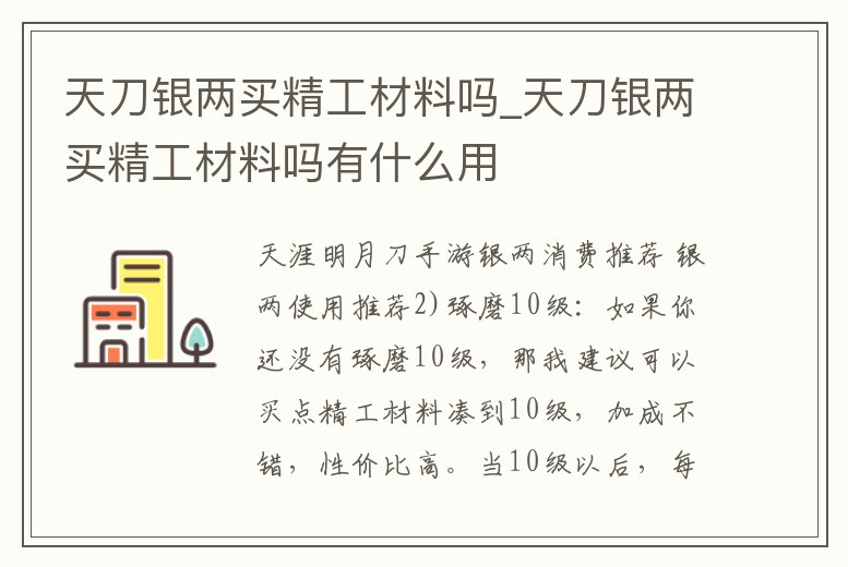天刀銀兩買精工材料嗎_天刀銀兩買精工材料嗎有什么用