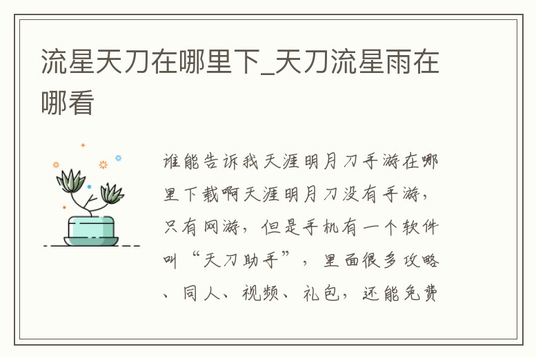 流星天刀在哪里下_天刀流星雨在哪看