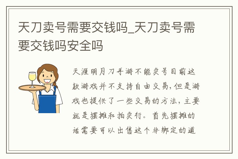 天刀賣號需要交錢嗎_天刀賣號需要交錢嗎安全嗎