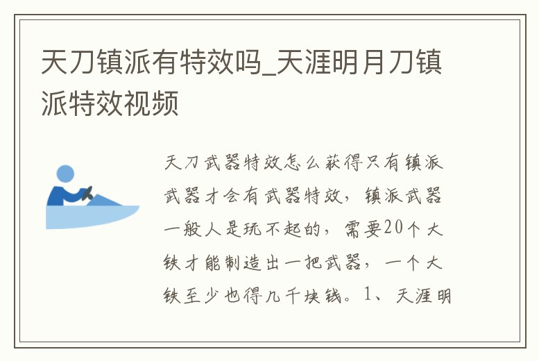 - 天刀鎮(zhèn)派有特效嗎_天涯明月刀鎮(zhèn)派特效視頻
