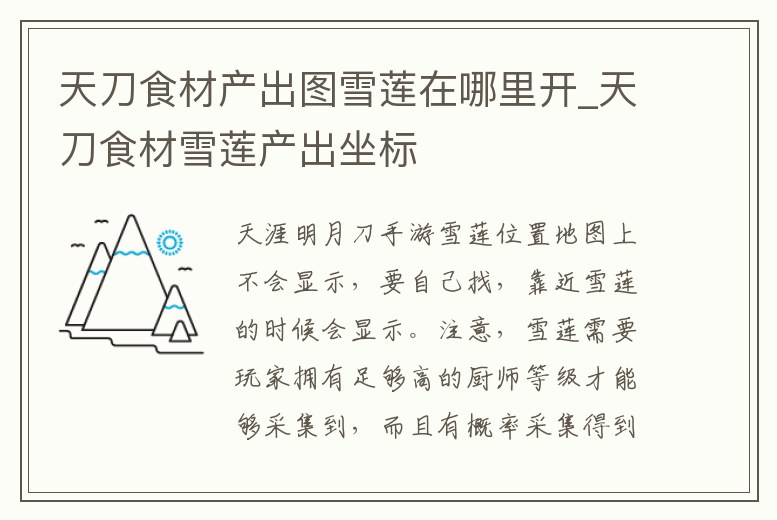天刀食材產(chǎn)出圖雪蓮在哪里開_天刀食材雪蓮產(chǎn)出坐標