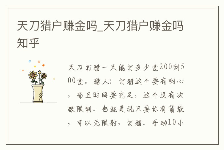天刀獵戶賺金嗎_天刀獵戶賺金嗎知乎