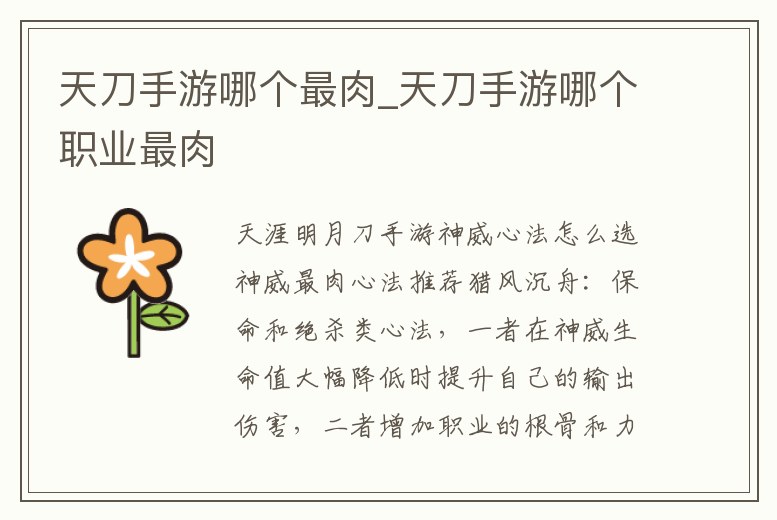 天刀手游哪個最肉_天刀手游哪個職業最肉