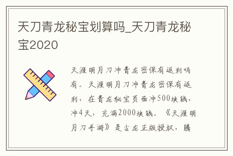 天刀青龍秘寶劃算嗎_天刀青龍秘寶2020