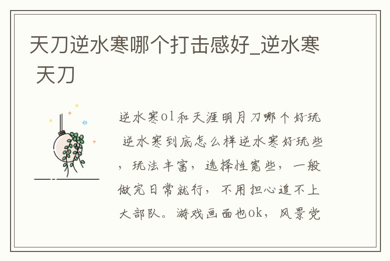 逆水寒ol和天涯明月刀哪個好玩 逆水寒到底怎么樣