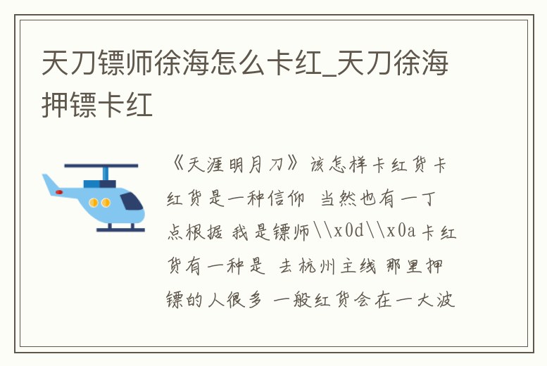天刀鏢師徐海怎么卡紅_天刀徐海押鏢卡紅