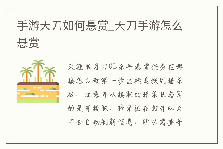 手游天刀如何懸賞_天刀手游怎么懸賞