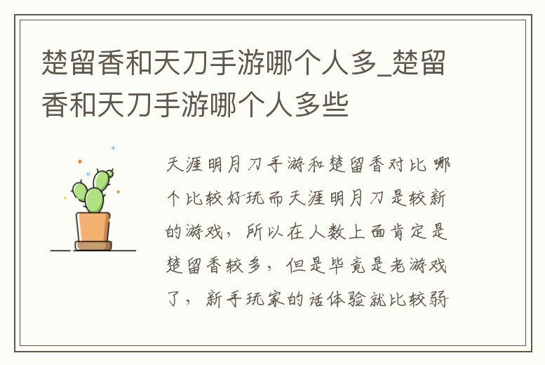 - 楚留香和天刀手游哪個(gè)人多_楚留香和天刀手游哪個(gè)人多些