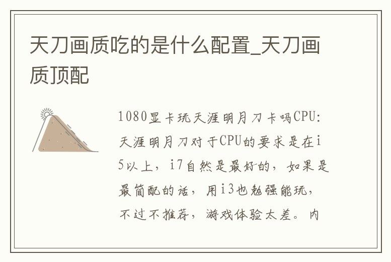 6、天涯明月刀開最高畫質(zhì)需要什么配置啊