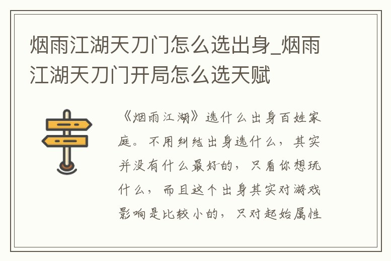煙雨江湖天刀門怎么選出身_煙雨江湖天刀門開局怎么選天賦