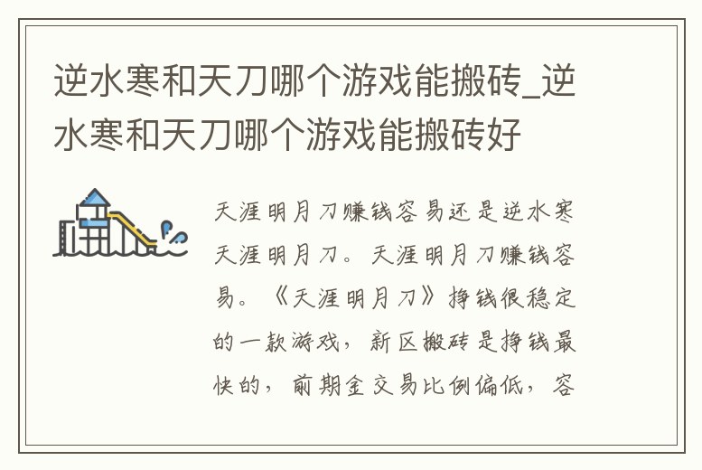 逆水寒和天刀哪個游戲能搬磚_逆水寒和天刀哪個游戲能搬磚好