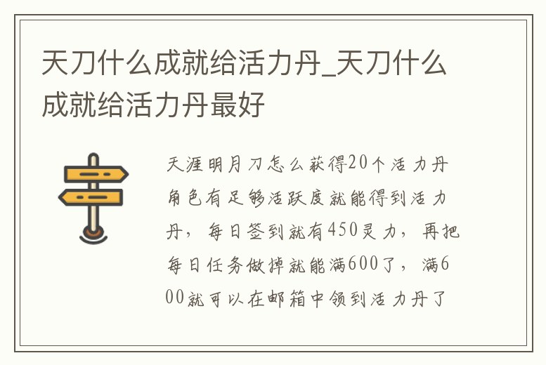 天刀什么成就給活力丹_天刀什么成就給活力丹最好